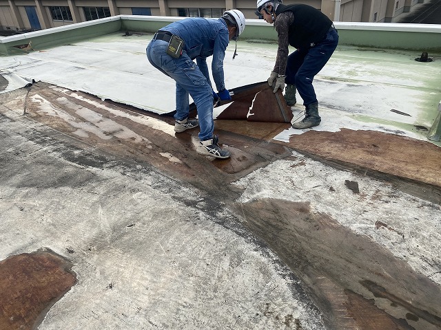 耐用年数に達すると 既存防水層の撤去 ⇒ 新規防水層の再施工 が必要になります。