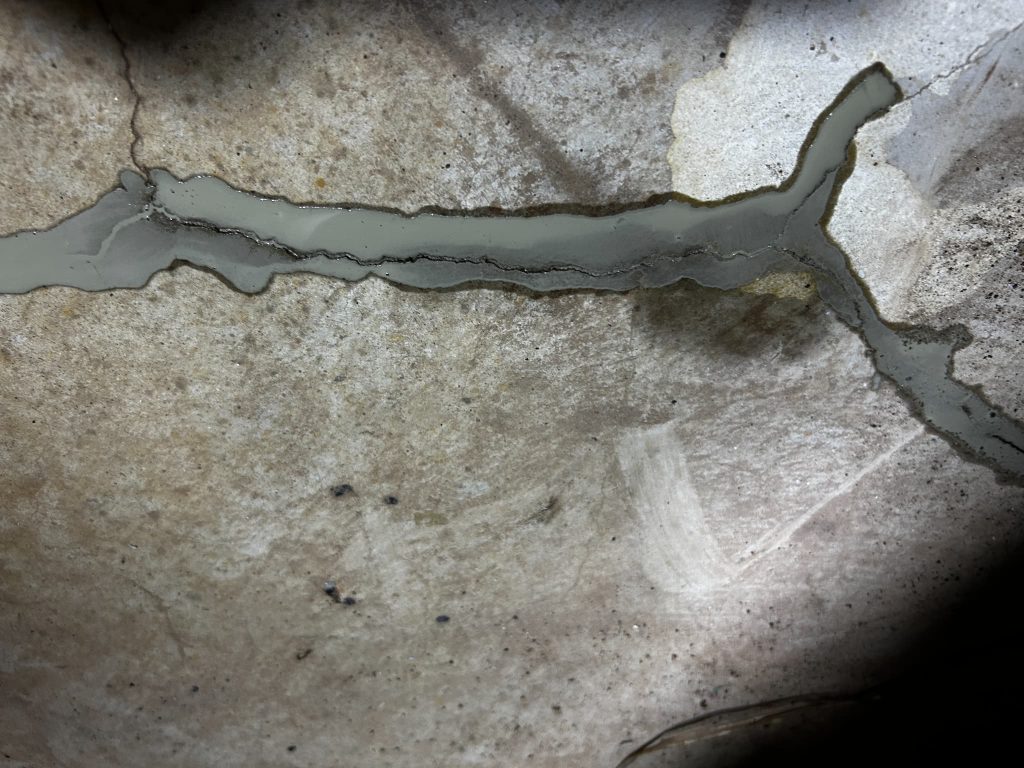 床面に確認されたひび割れに対し、